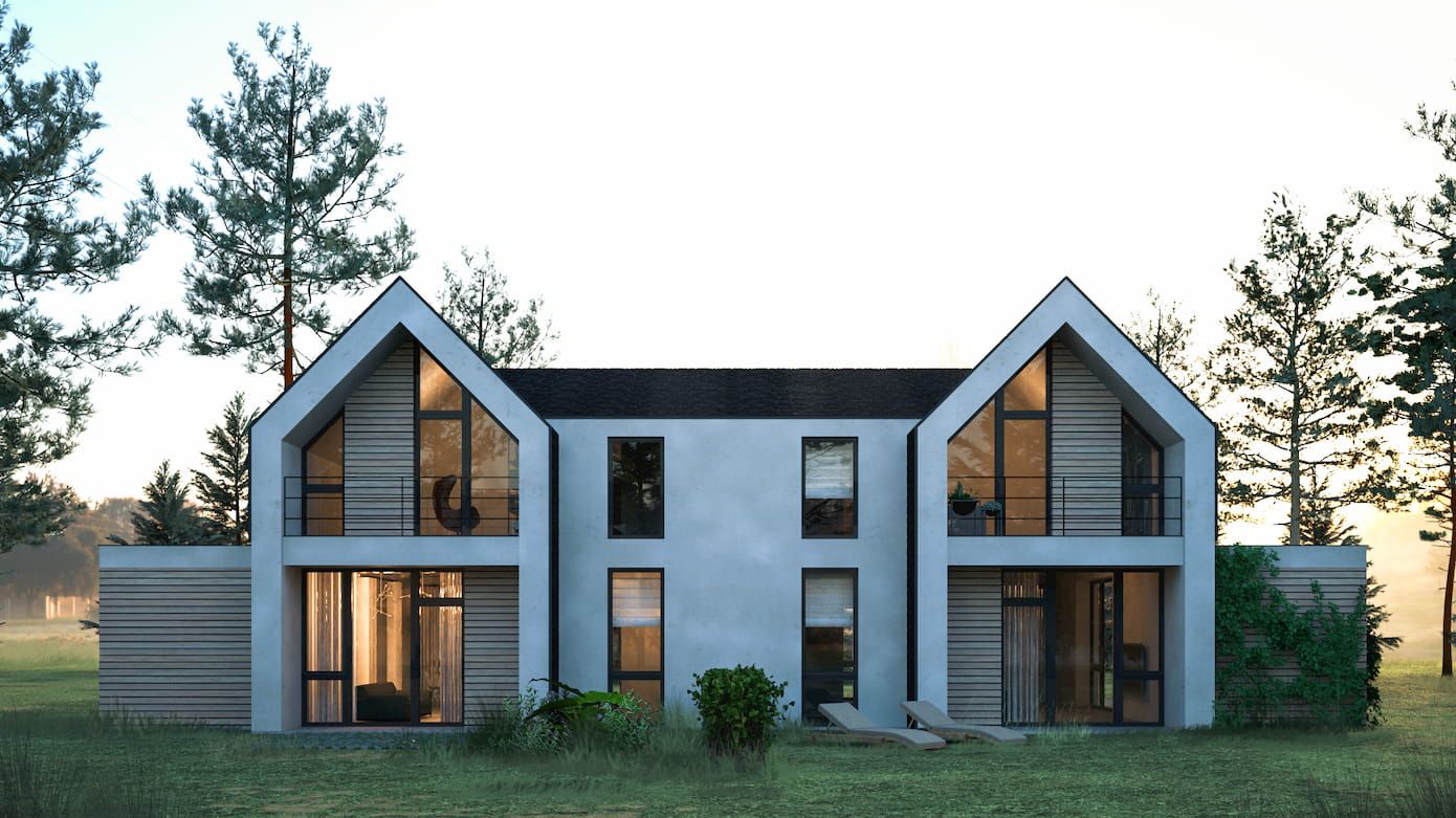 Дом-дуплекс — это разумный компромисс между квартирой и коттеджем. Он сочетает в себе преимущества частного жилья (своя территория, независимость, комфорт) и экономичность совместного строительства.
